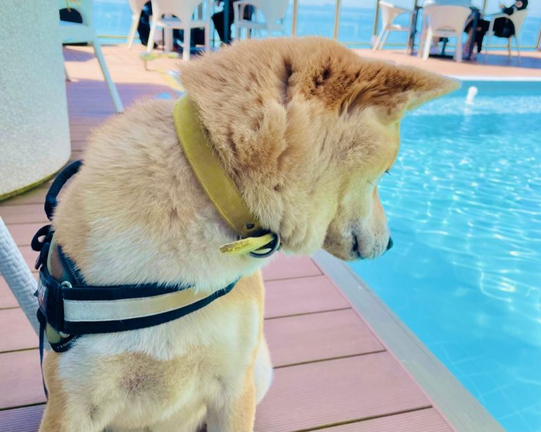 れいさんは水が嫌いなので、ずっとプールに落ちないか不安そうに見つめていました笑