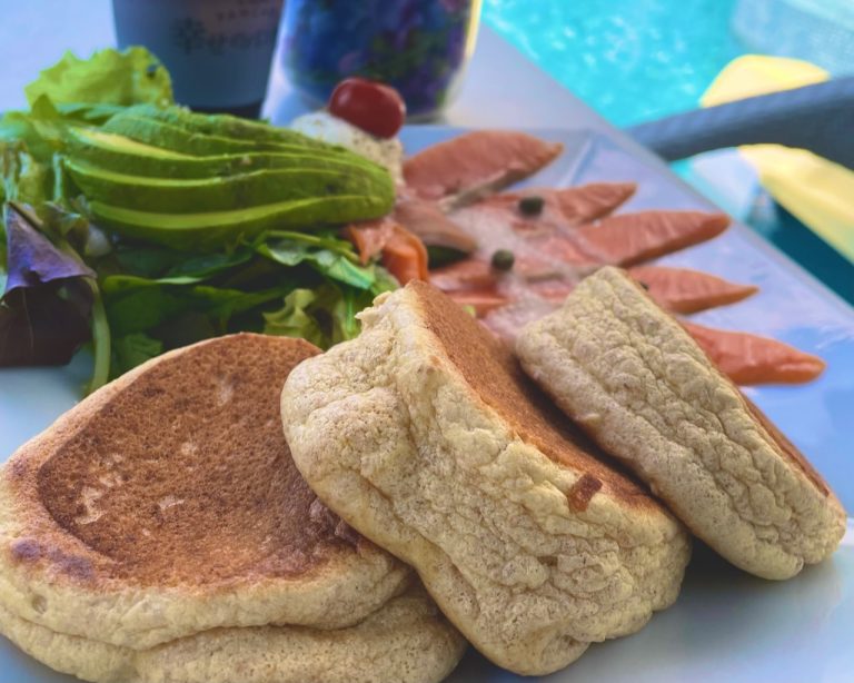 私はご飯系のパンケーキを。このパンケーキ何味かわからないけど、ほんのり甘味もあって美味しかった✨
