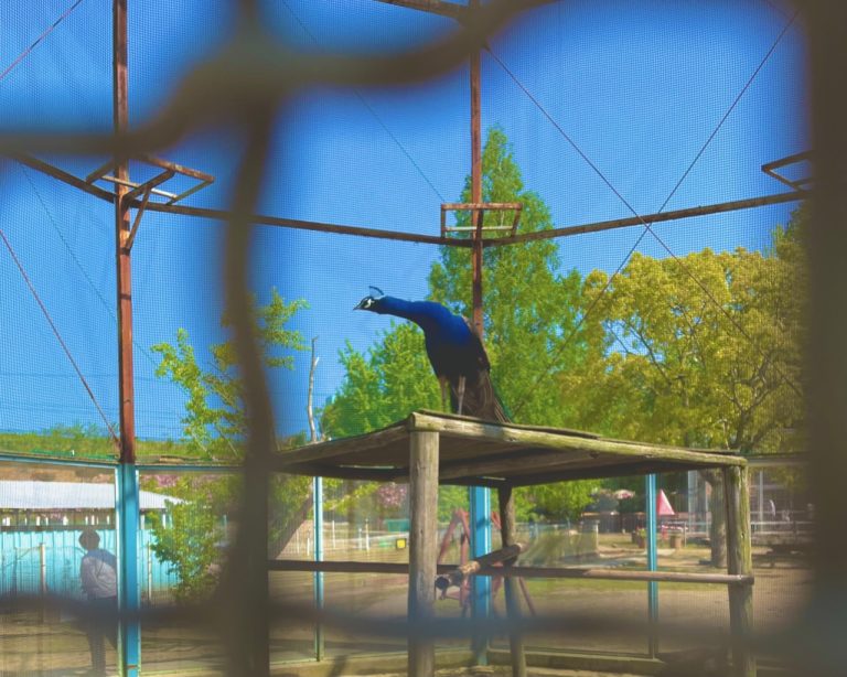 びっくりするのはこの青い孔雀が一定のタイミングで爆音で「ぴー!!」と鳴くこと。笑結構びっくりするんです。オスの孔雀がこのメスの孔雀の台の下にいたんですが、レイ君は物珍しさに孔雀たちがいる柵の周りを10周くらいしてました、、、人間はしんどかったです。笑