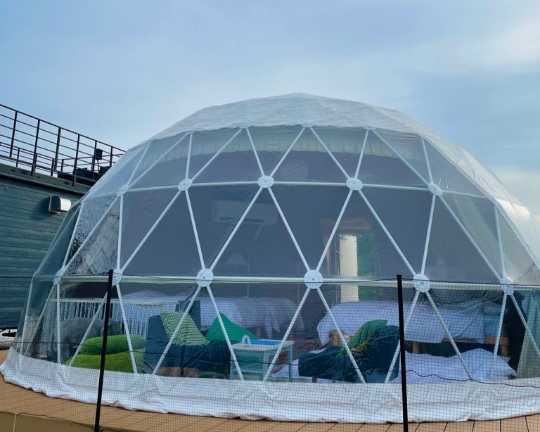 その後はちょっと移動して、本日のお宿~めちゃ素敵なドーム型のテント(?)!いわゆるグランピングってやつです。結構広いドッグラン🐶付きそこにはなんと、私の大好きなキャンプファイヤー🔥が!