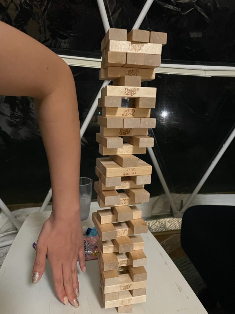 夜はお風呂待ちの間、妹とジェンガ。😳