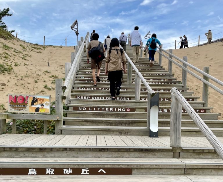 この階段を上るとついに砂丘が見えます!この階段の時点でもさらさらの砂で子どもなら絶対テンションが上がるはず!🥰