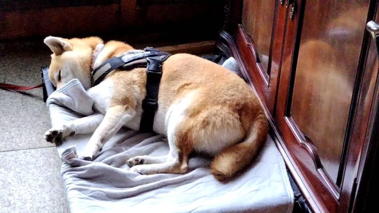 家に帰って、即寝。そして次の日もなかなか起きてこず、1日中こんな感じで屍のようだったみたいです!!(笑) この写真からもハーネス取らずに超ぐっすり寝てるのがめちゃくちゃ疲れたんやろうな~ってすごく分かります😊