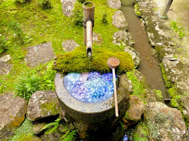 私は初めて知ったのですが、このお寺には竹の筒を使って水の音を聞く「心琴窟(しんきんくつ)」というのがあるそうです。これは地中にある小さい洞窟に水💧を垂らすと、そこから発する水の音が聞こえるというものだそうで、周りの声が結構あったのでめちゃくちゃ聞こえたわけではなかったですが、素敵な水の音が聞こえました👂