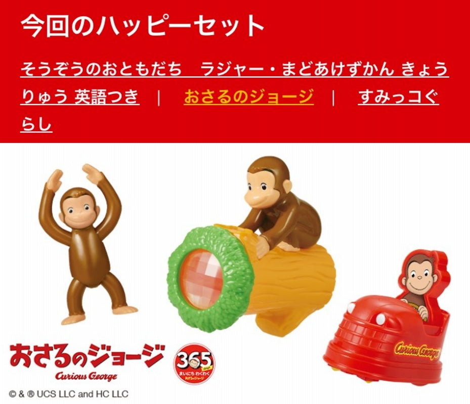 いや~なかなかキツかったッス(+o+)だって今回のおさるのジョージ3種類、一度に頼めばダブることなく揃うんで。