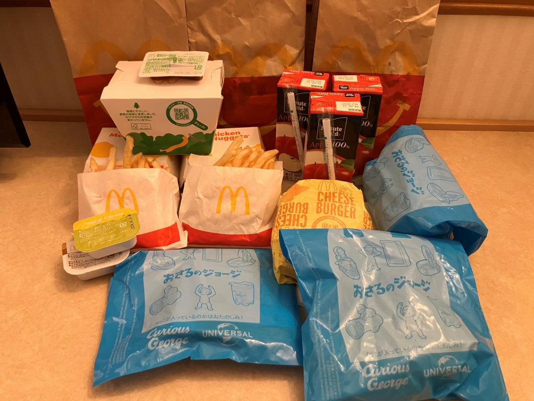 マックの定員さん、「このお父さん、子供3人に頼まれたんだろうな~。良きパパだなあ」って顔してましたが、とんでもない。ぜんぶ私の胃の中、私のおもちゃです。
