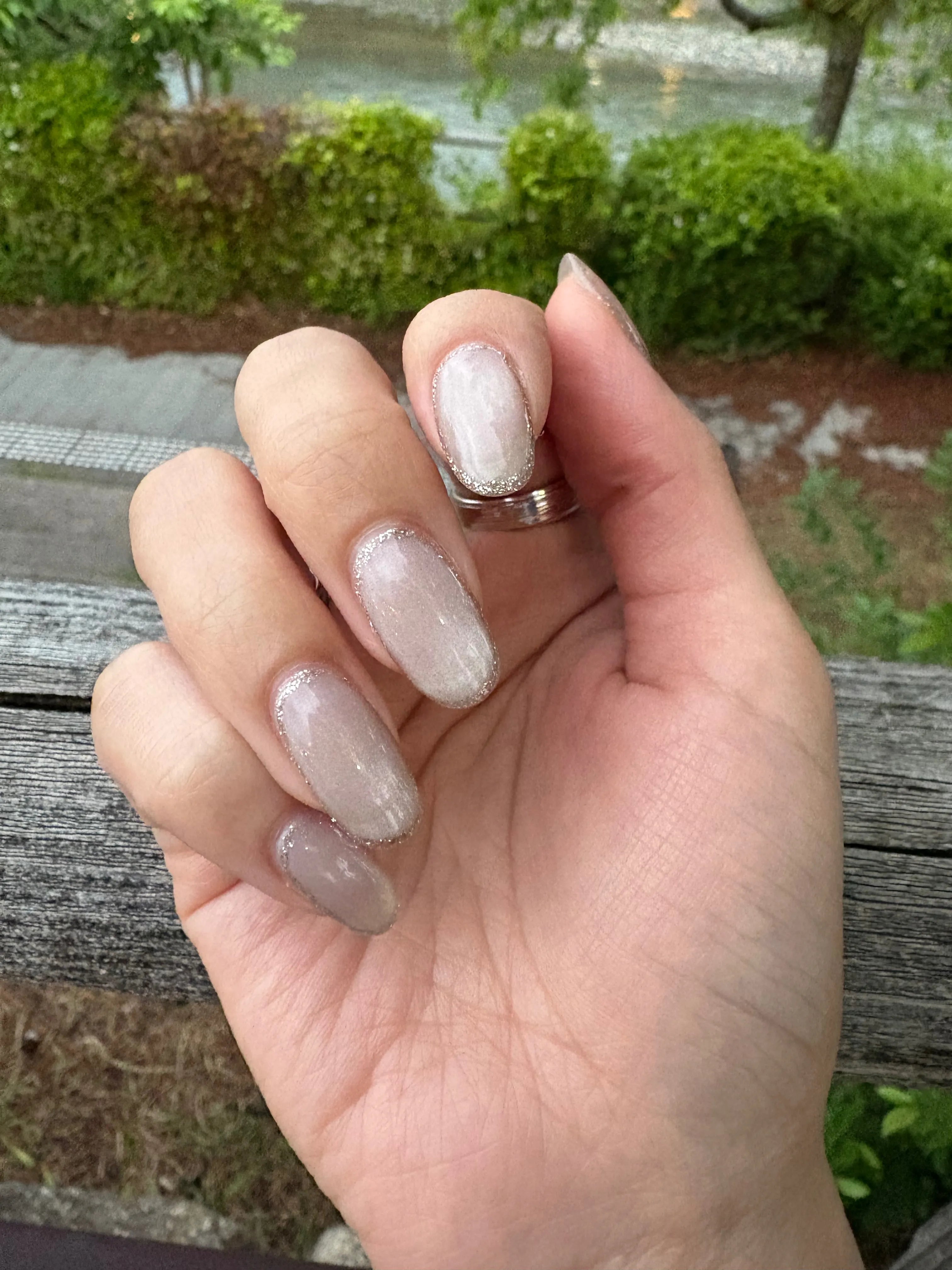 5月は抜け感のあるマグネットネイルで、爪回りをぐるっとラメで囲んでもらいました😻