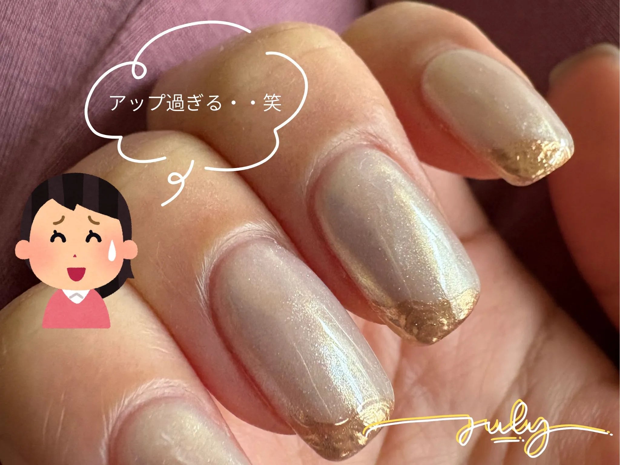 その上からすこしウェーブ掛かったゴールドのラインを💅
