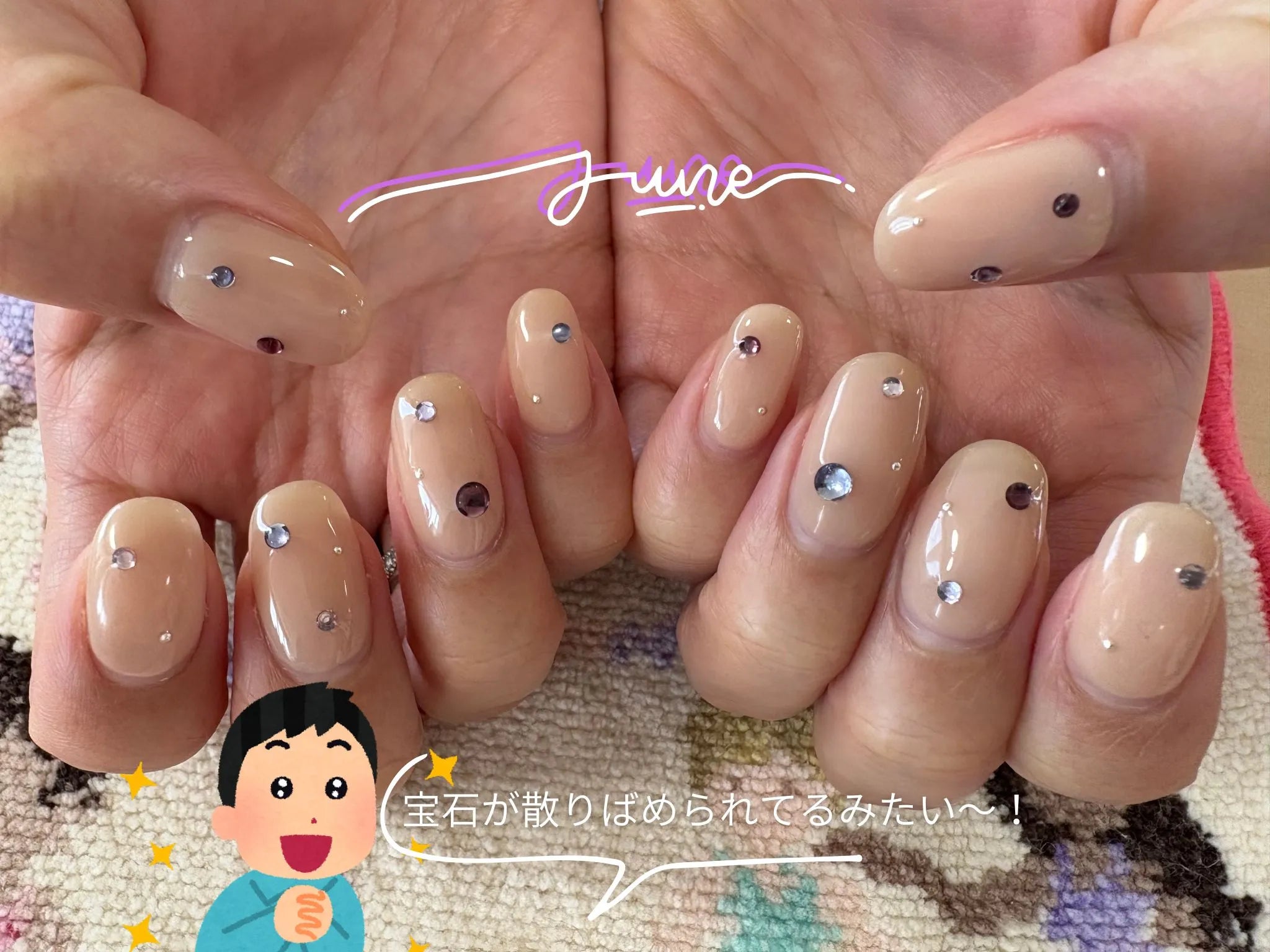 ストーンパーツは6月らしく、パープル系にしてもらい、少し紫陽花をイメージしました🙌