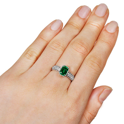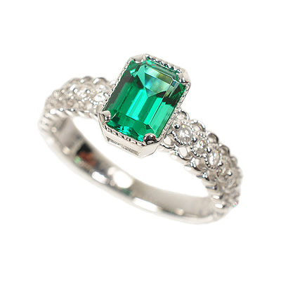 エメラルド/ダイヤモンド K18リング(クレサンベール/エメラルドカット/アンティーク風/5月誕生石)《WRGE2636》