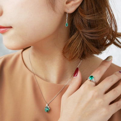 エメラルド/ダイヤモンド プラチナネックレス(クレサンベール/ペアシェイプ/5月誕生石)《WPDE2638》