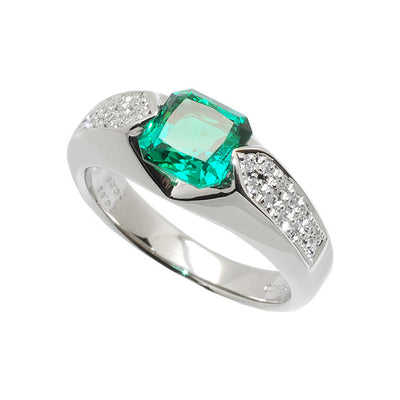 エメラルド/ダイヤモンド プラチナリング(クレサンベール/ラディアントカット/ラグジュアリー/5月誕生石)《BRGE3100》