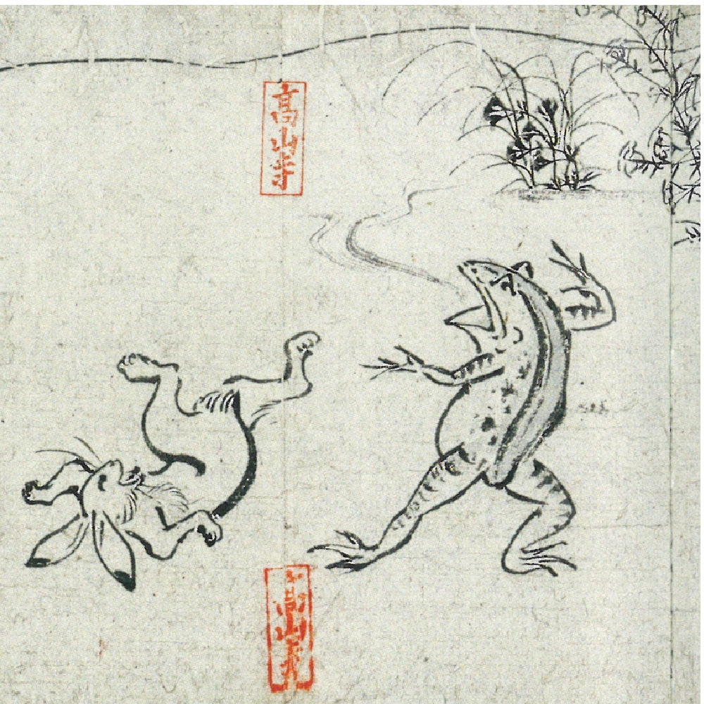 「鳥獣戯画」は、高山寺に伝わる国宝の戯画絵巻。