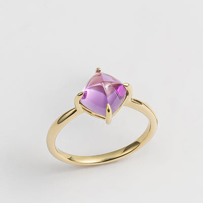 ピンクサファイア K18リング(クレサンベール/シュガーローフ/9月誕生石)《WRGM4188》