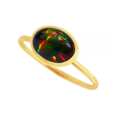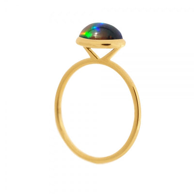 ブラックオパール K18リング(クレサンベール/1カラットサイズ/オーバル/カボションカット/フクリン/10月誕生石)《WRGB3578》
