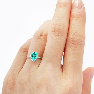 エメラルド プラチナリング(クレサンベール/1カラットサイズ/ペアシェイプ/フクリン/5月誕生石)《WRGE3591》
