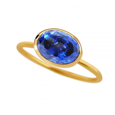 ブルーサファイア/ダイヤモンド K18リング(クレサンベール/1カラットUP/オーバル/フクリン/9月誕生石)《WRGS3578》