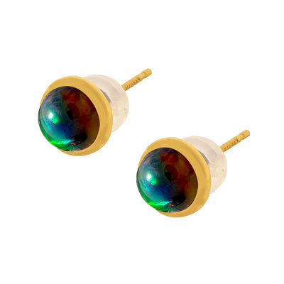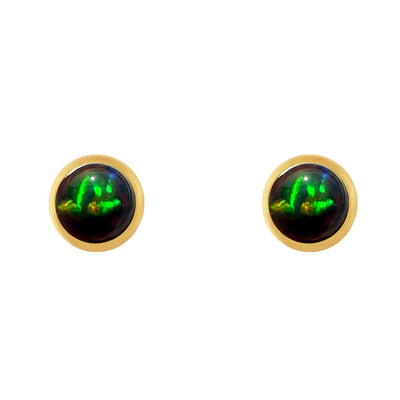ブラックオパール K18ピアス(クレサンベール/1カラットサイズ/カボションカット/フクリン/10月誕生石)《WEPB3588》