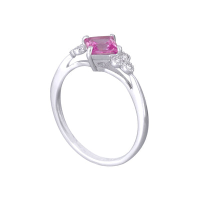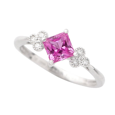 ピンクサファイア/ダイヤモンド K18リング(クレサンベール/プリンセス/ミル打ち/9月誕生石)《WRGM3184》