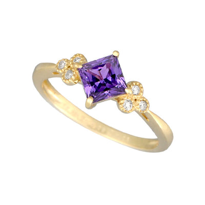 バイオレットサファイア/ダイヤモンド K18リング(クレサンベール/プリンセス/ミル打ち/9月誕生石)《WRGS3185》
