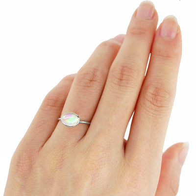 ウォーターオパール プラチナリング(クレサンベール/1カラットサイズ/オーバル/カボションカット/フクリン/10月誕生石)《WRGW3592》