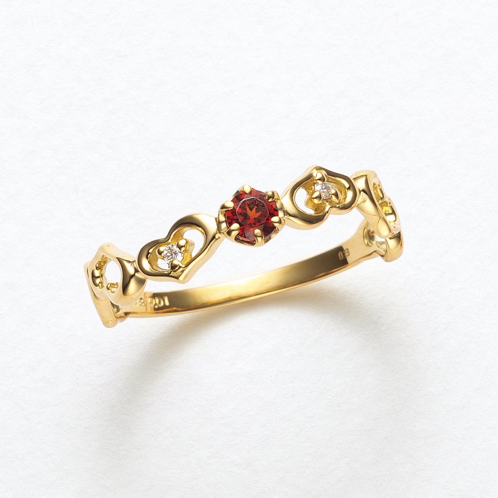 貞操・忠実・変わらぬ愛など、愛を象徴する石言葉を持っているガーネットは、1月の誕生石、そして18年目の結婚記念石でもあります。お守りのように身に着けるだけでなく、大切な記念日のプレゼントにもぴったりのジュエリーです。