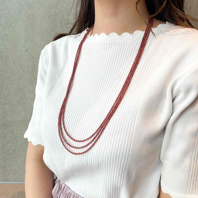 ガーネットというと、女性の肌をより美しく引き立ててくれる深紅の輝きが印象的ですが、一方で赤の他にも、紫や茶、緑やオレンジなど、豊富なカラーバリエーションがあるのも特徴です。京セラジュエリーオンラインストアでは、そんなガーネットのさまざまな色彩が楽しめるジュエリーを、デザイン豊富にご用意しています。