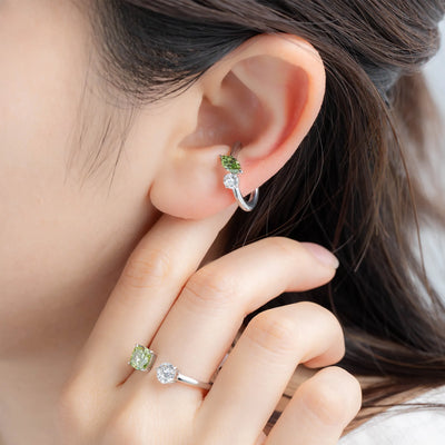 グリーンダイヤモンド/ダイヤモンド プラチナイヤーカフ(ラボグロウン/マーキス/Polaire/4月誕生石)《WESG7033》