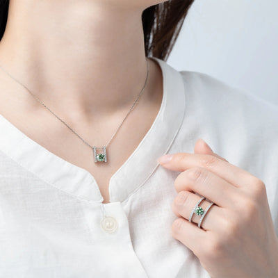 グリーンダイヤモンド/ダイヤモンド プラチナネックレス(ラボグロウン/ラウンド/Solrelier/4月誕生石)《WPDG7021》