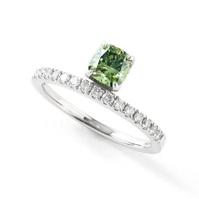 グリーンダイヤモンド/ダイヤモンド プラチナリング(ラボグロウン/クッション/Polaire/4月誕生石)《WRGG7029》