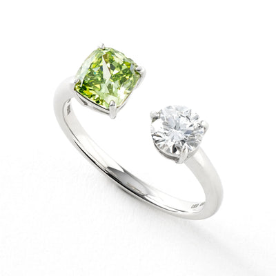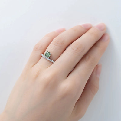 グリーンダイヤモンド/ダイヤモンド プラチナリング(ラボグロウン/クッション/Solrelier/4月誕生石)《WRGG7007》
