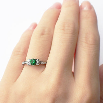 エメラルド/ダイヤモンド プラチナリング(クレサンベール/プリンセスエメラルド/5月誕生石)《BRGE7650》