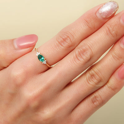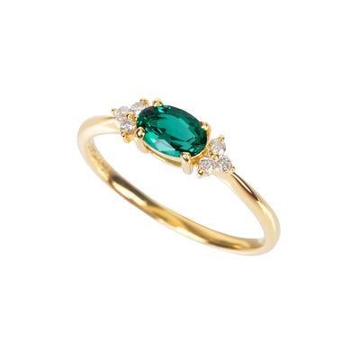 エメラルド/ダイヤモンド K18リング(クレサンベール/オーバル/ミル打ち/5月誕生石)《WRGE3139》