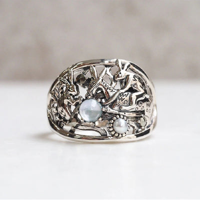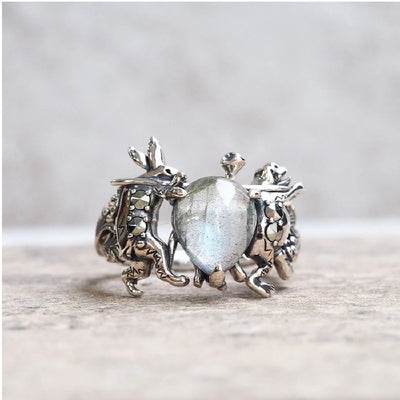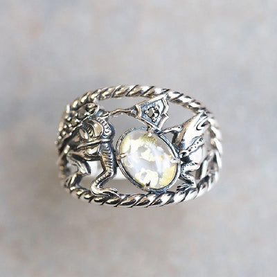張り合わせ石(フェルスパー/クォーツ) シルバーリング(鳥獣戯画)《M0050003》
