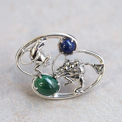 マラカイト/ラピスラズリ シルバーブローチ(鳥獣戯画)《M0050009》