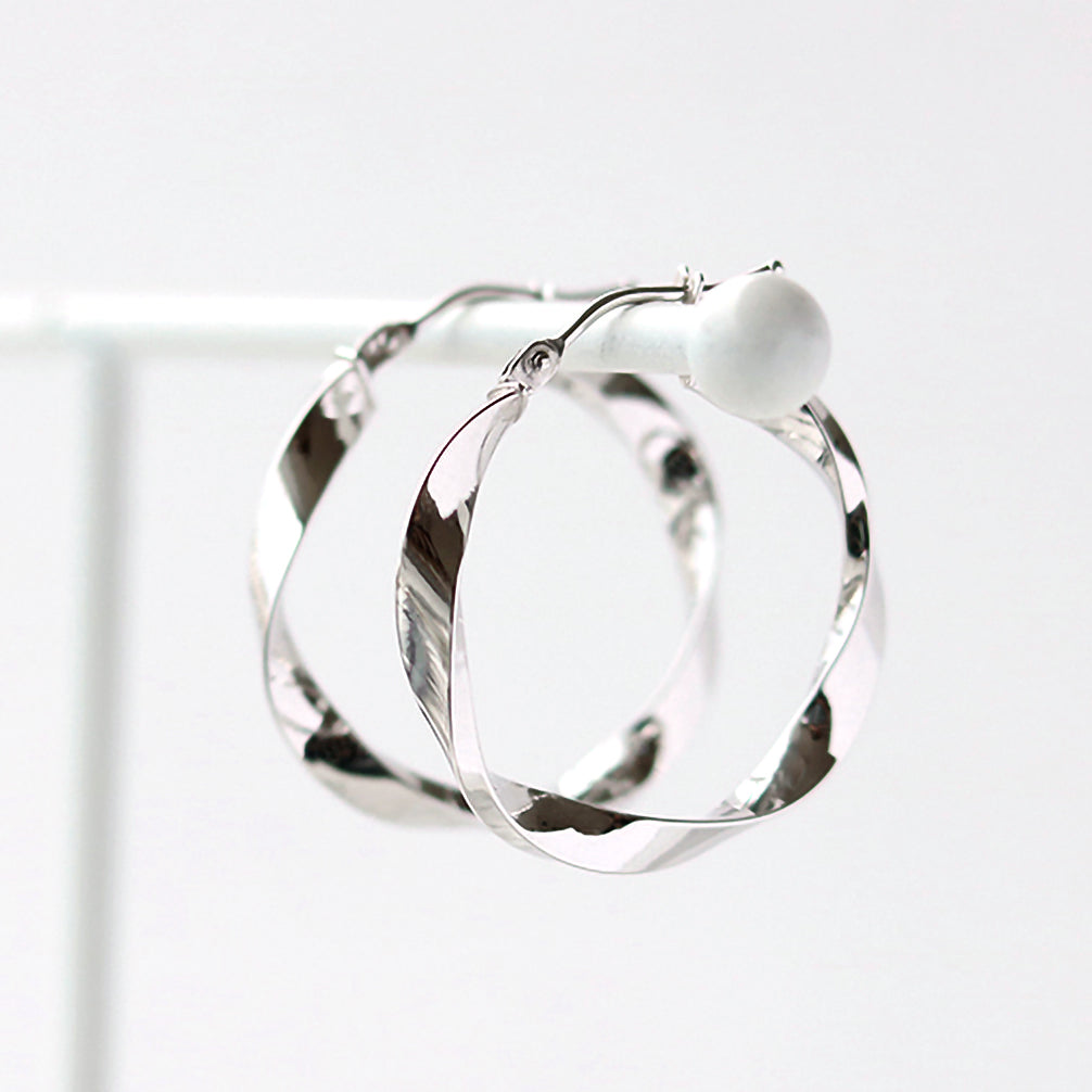 地金を大きくツイストさせた洗練された印象のデザインで、どの角度からも光を反射してキラキラとした輝きを放ちます。