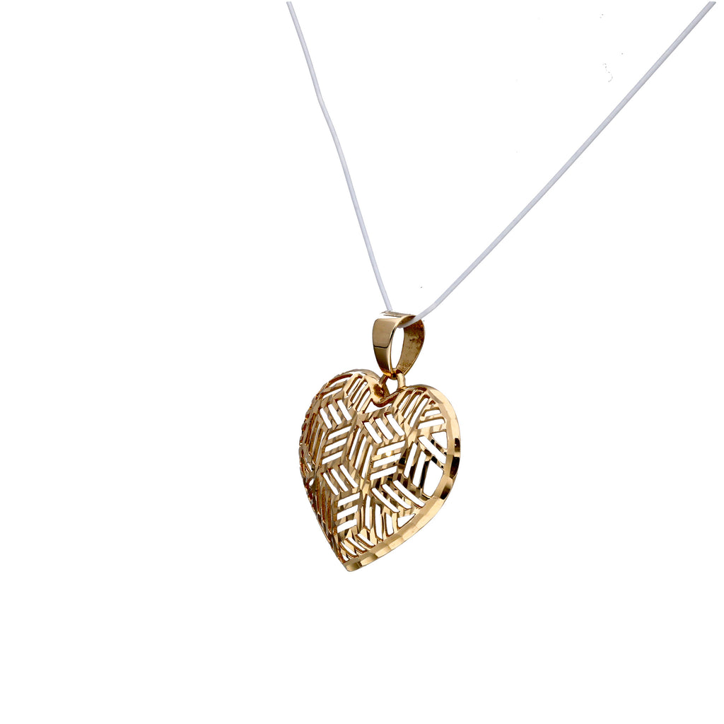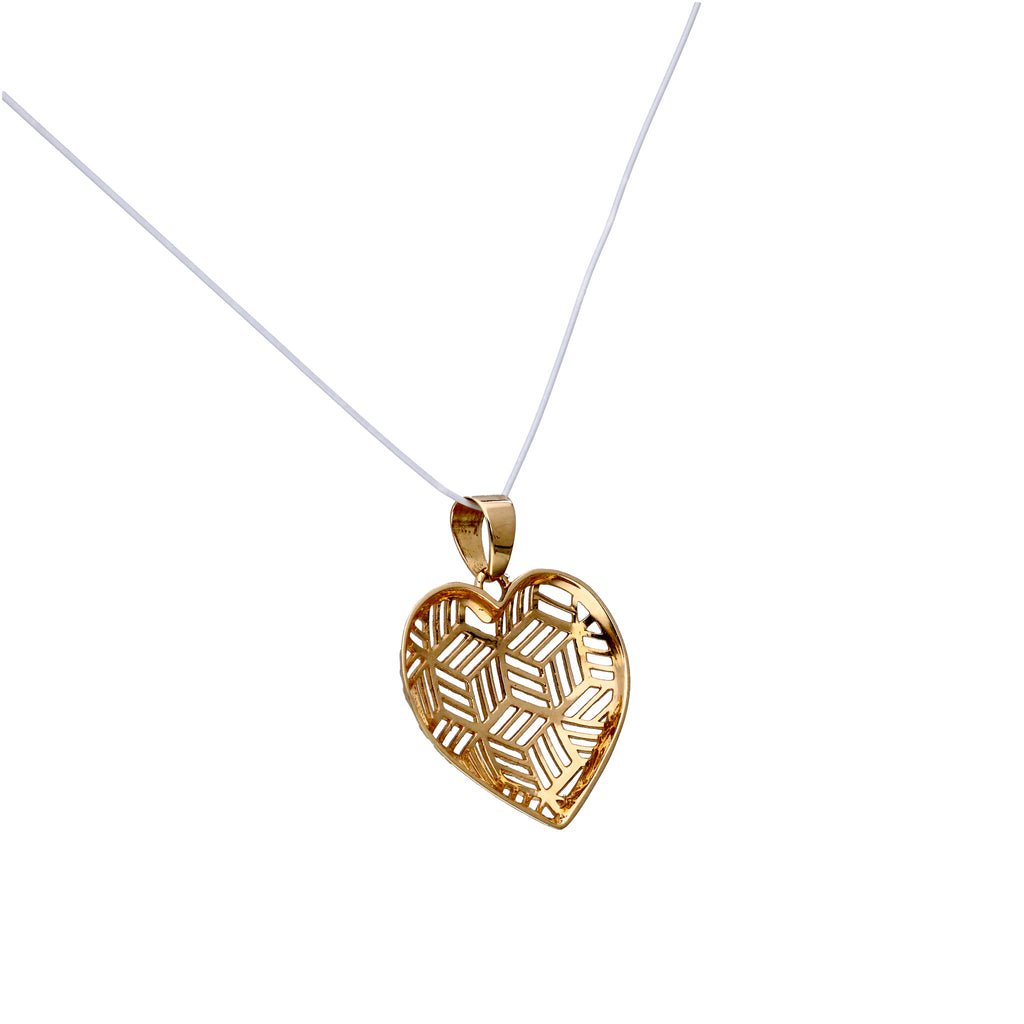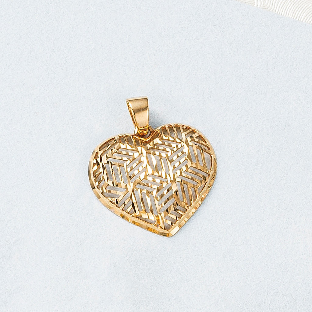 中央部分をふっくらとさせてボリューム感を出したハートモチーフ。ハート全体に幾何学模様の透かしが施されていて、可愛らしくなりすぎないように工夫しています。