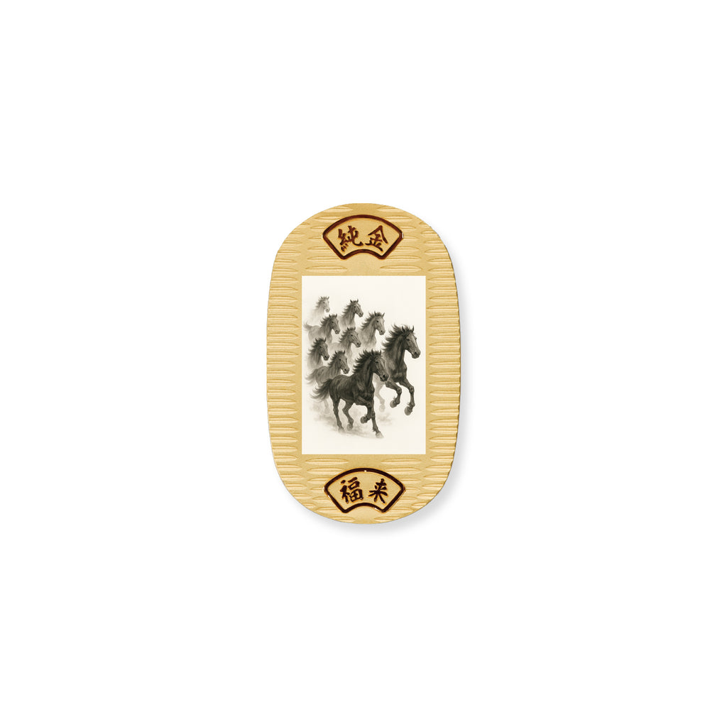 表面に「馬九行久(うまくいく)」のイラストが、裏面には「馬九行久」の文字がプリントされた純金製の小判です。