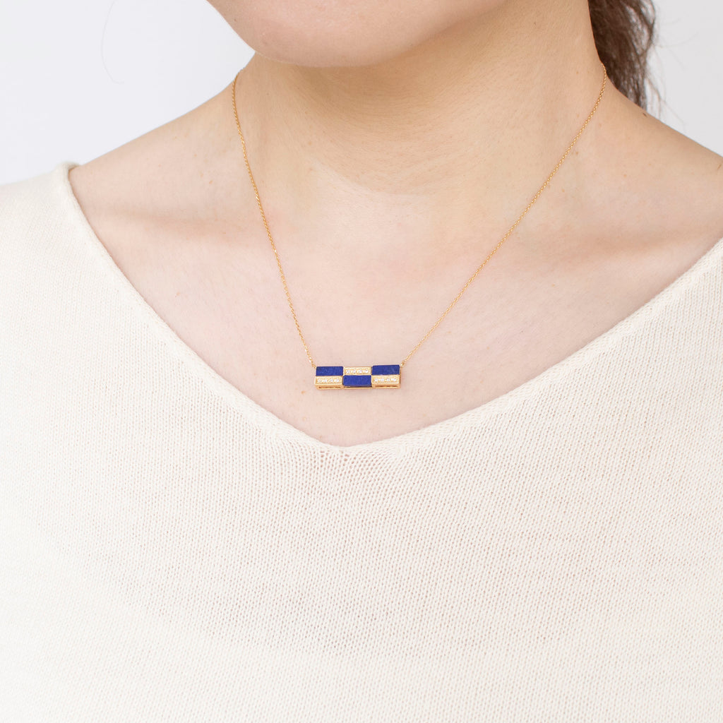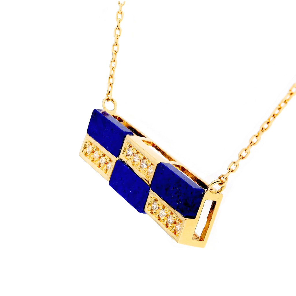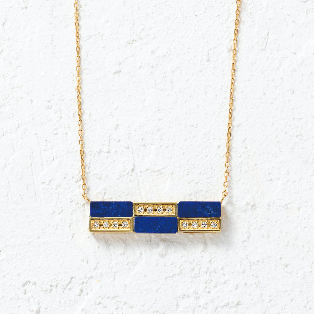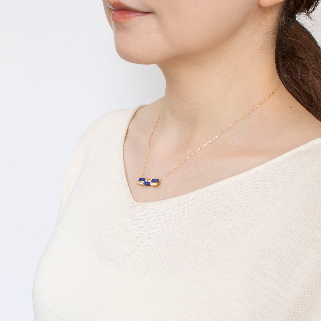 MJC&ODOLLYでも特に人気の宝石ラピスラズリ。長方形にカットしたラピスラズリとメレダイヤを市松模様に並べたデザインです。