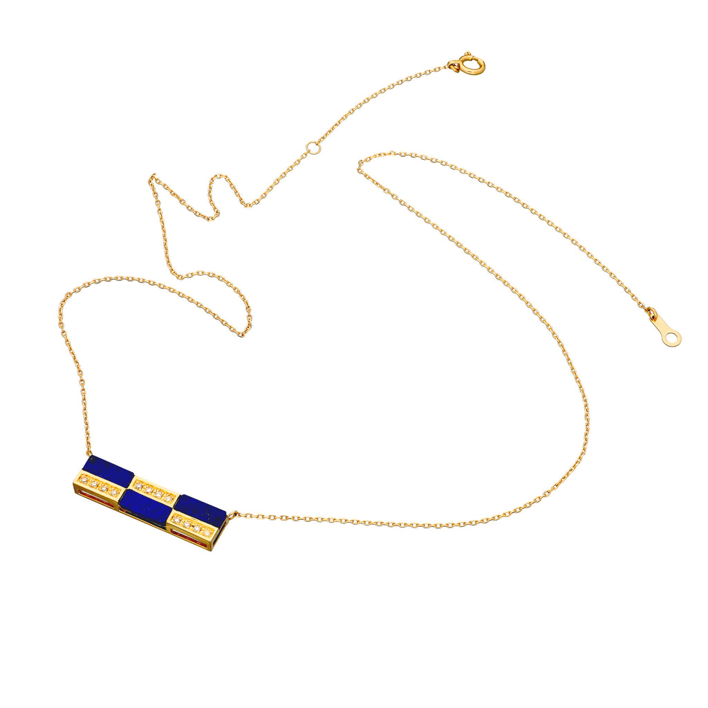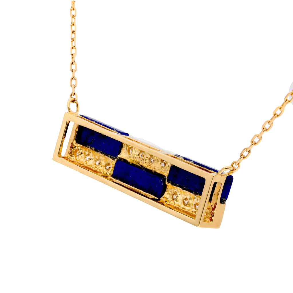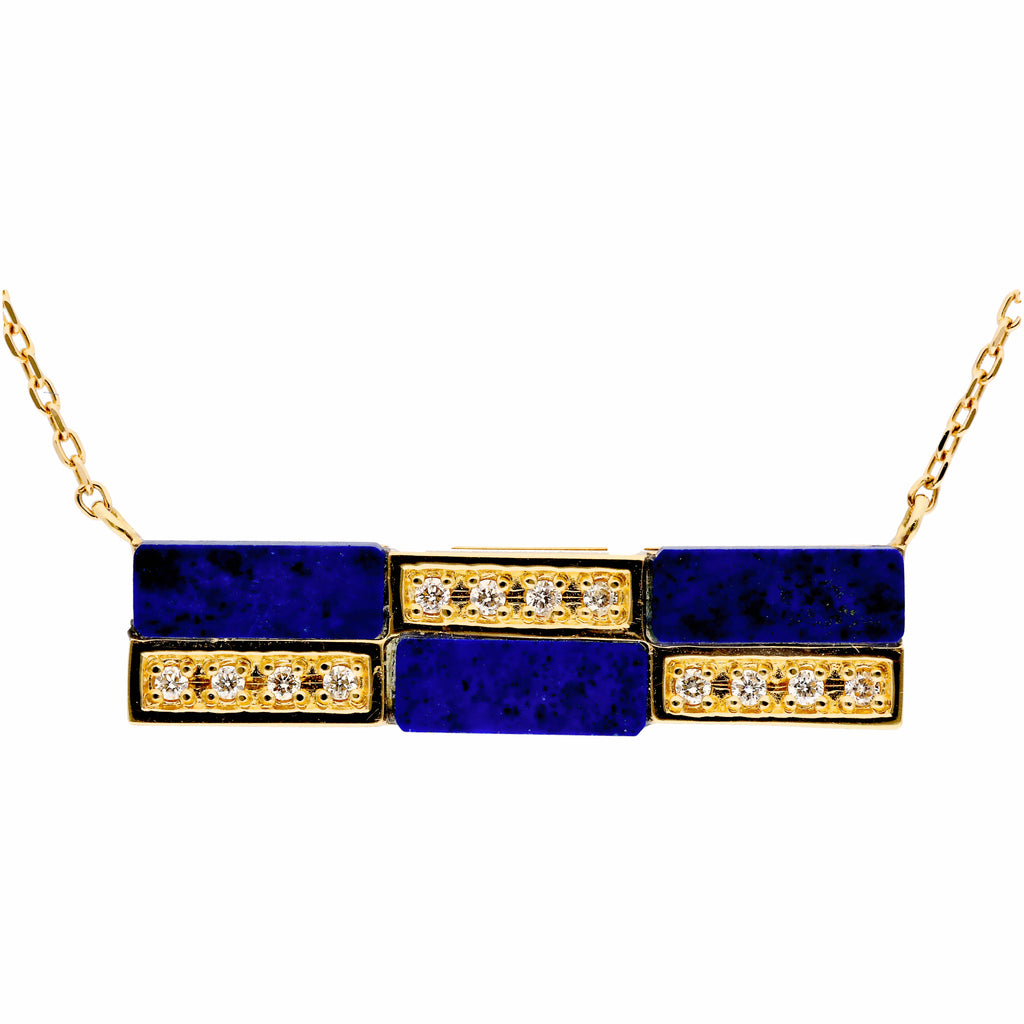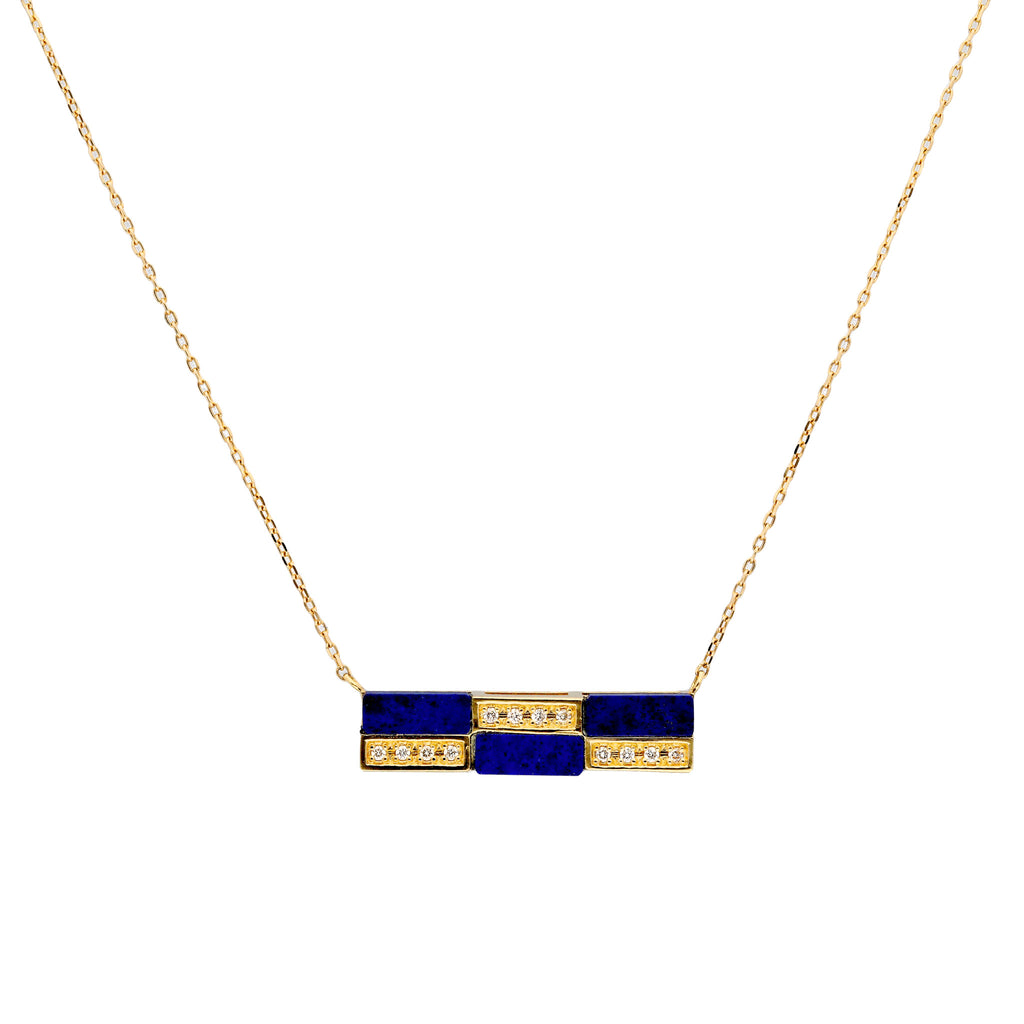 MJC&ODOLLYでも特に人気の宝石ラピスラズリ。長方形にカットしたラピスラズリとメレダイヤを市松模様に並べたデザインです。
