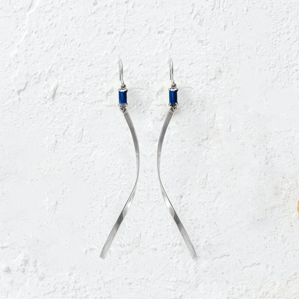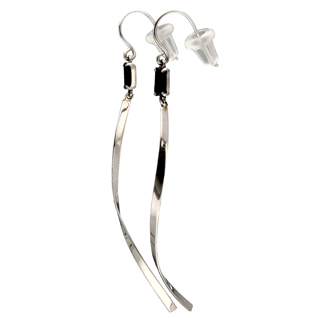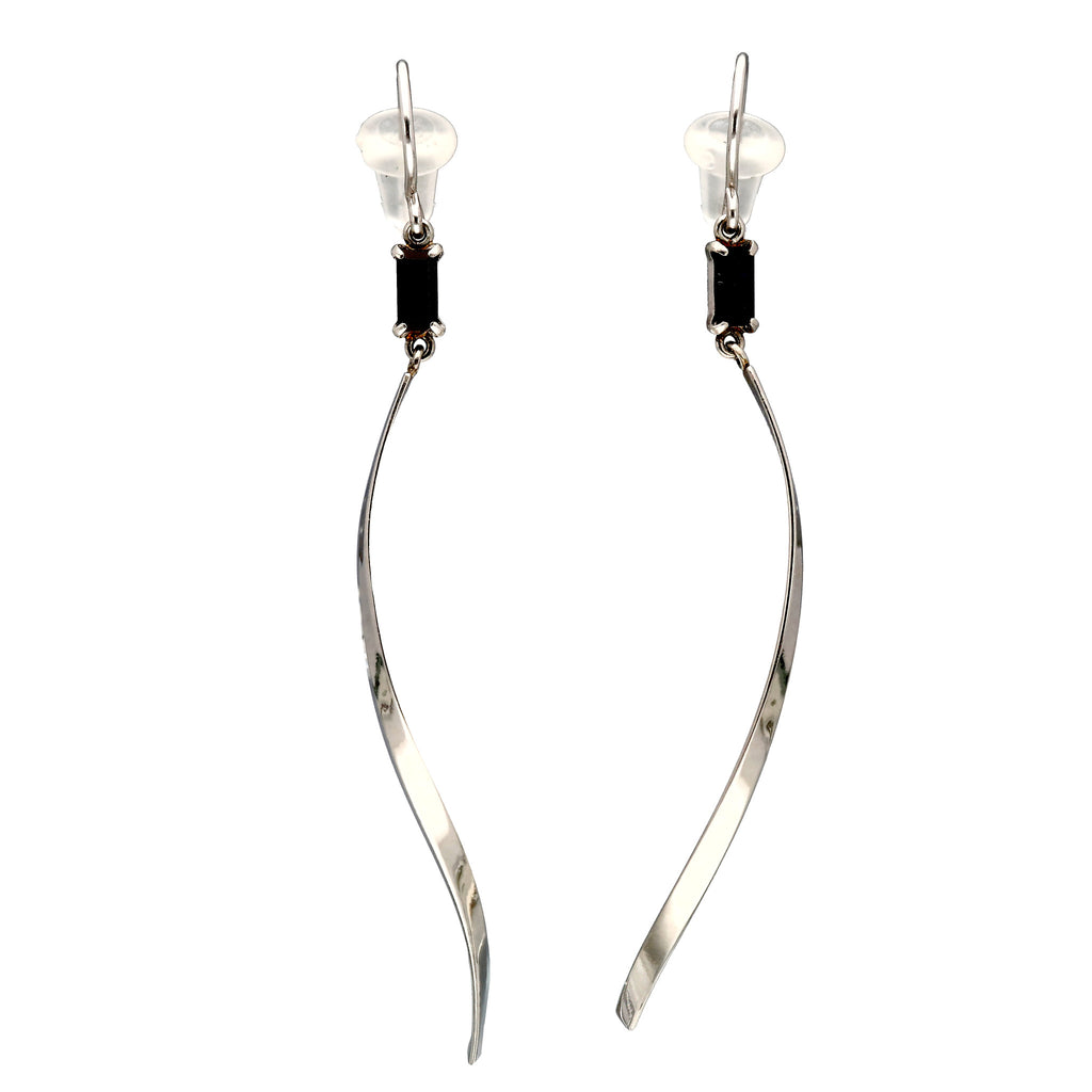 長めのリボン状のパーツが耳元で揺れる、クールな印象のピアスです。