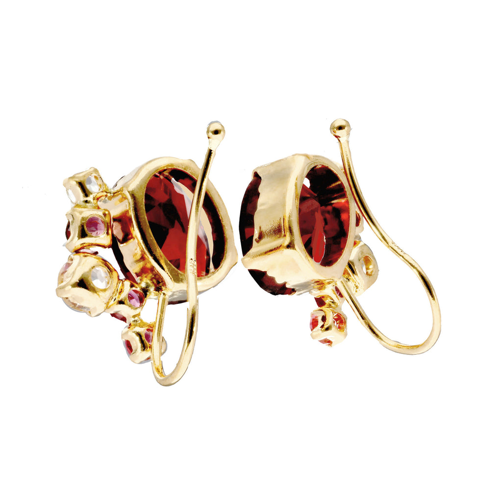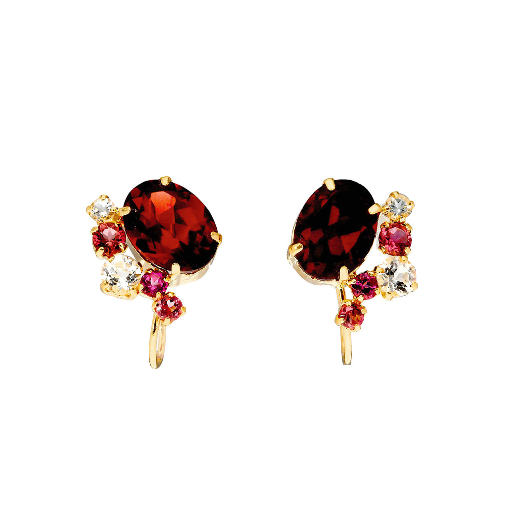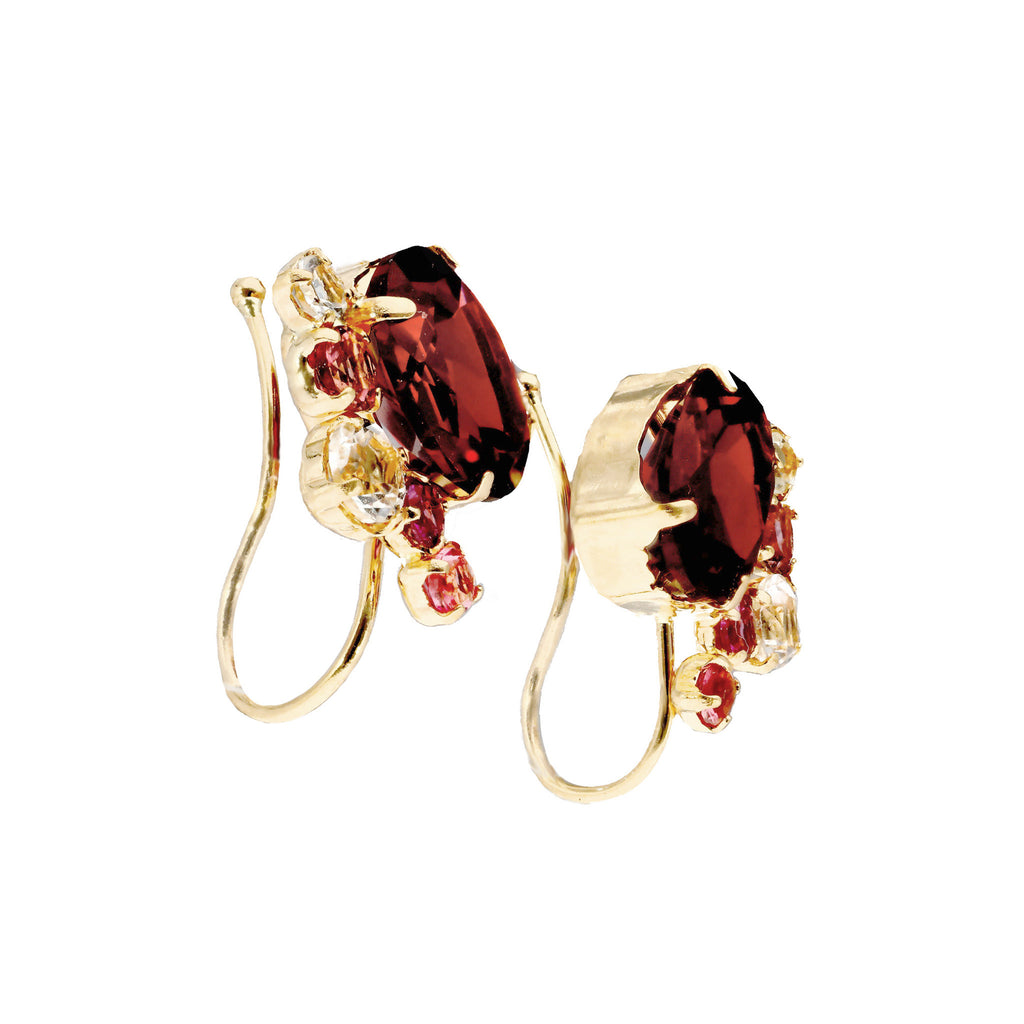 こっくりとした赤色のガーネットをメインに、カラーストーンをバランスよく配置したイヤリング兼イヤーカフです。
