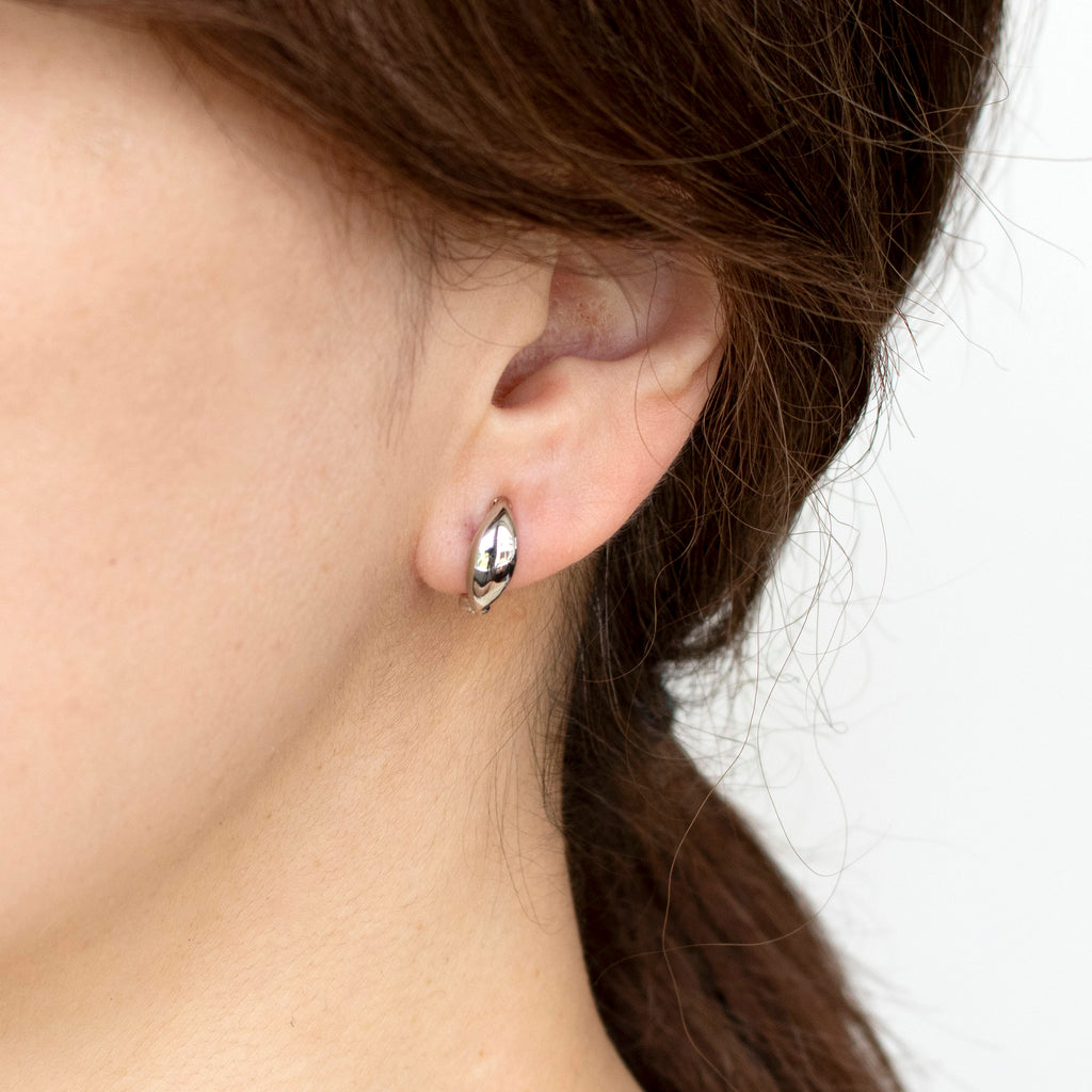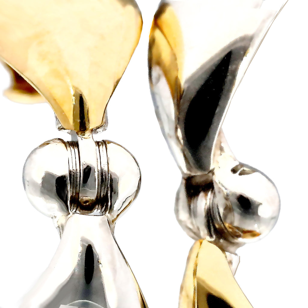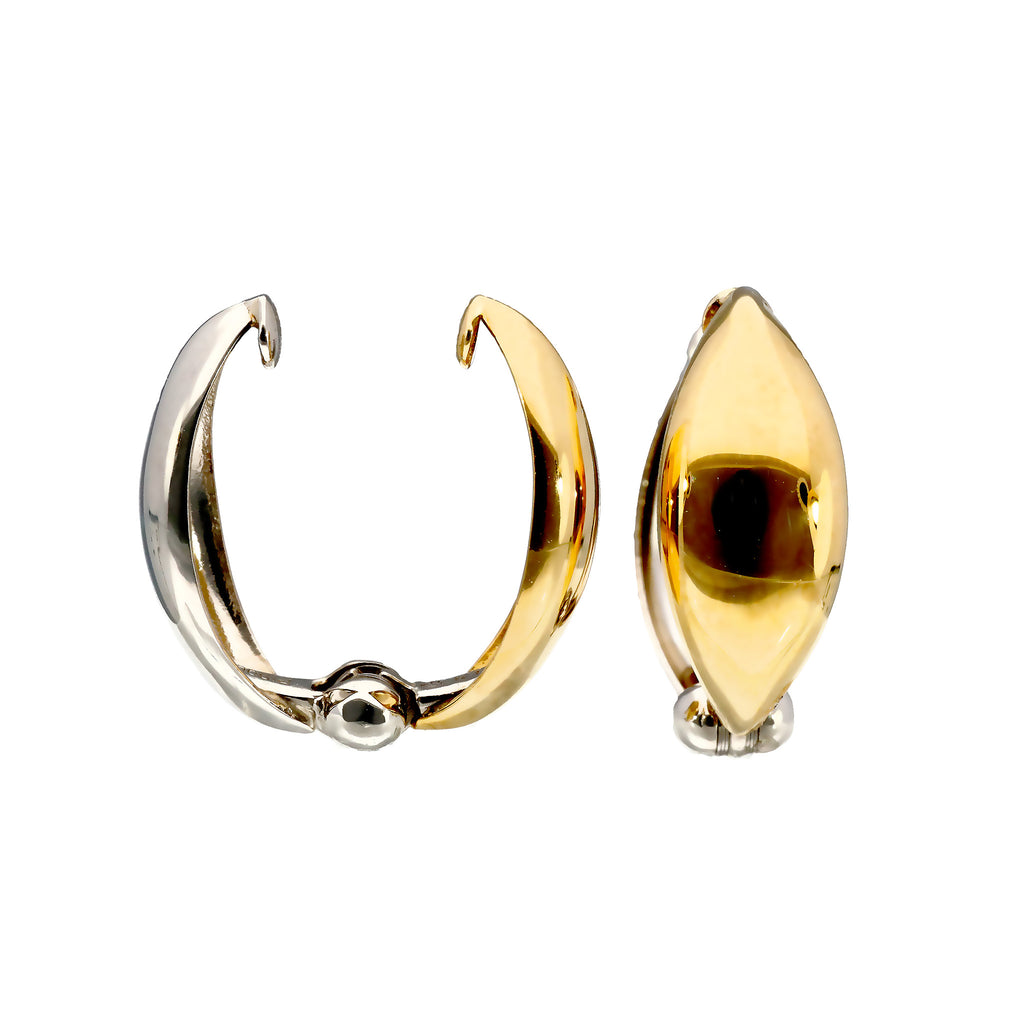 シンプルなリーフ形のピアリングの片側は10金イエローゴールドに、片側は10金ホワイトゴールドに地金の色を変えてあるので、その日の気分によって地金の色を変えて見せることができるお得な仕様。