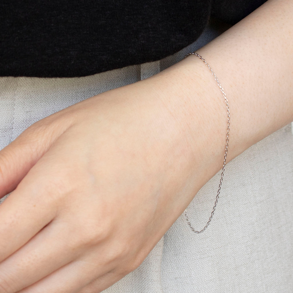 細身のチェーンですが、カットがキラキラときらめいて手首を華やかに見せてくれます。