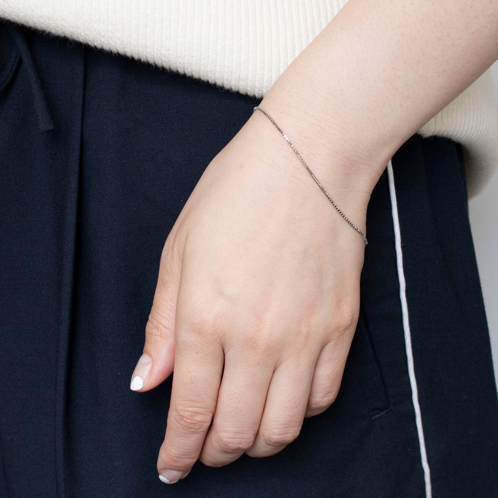 しなやかな印象のチェーンが、手首を適度に華やかにみせてくれます。