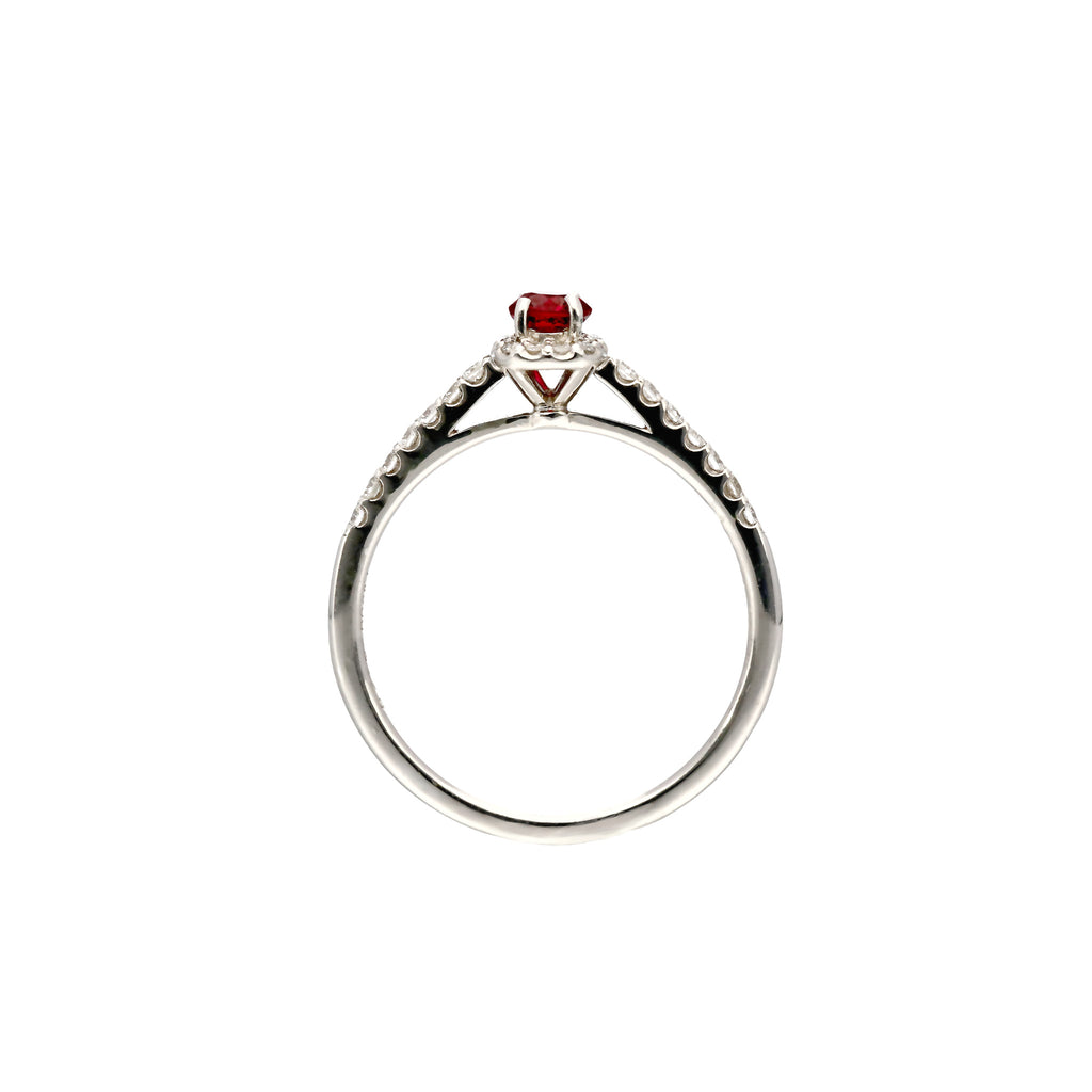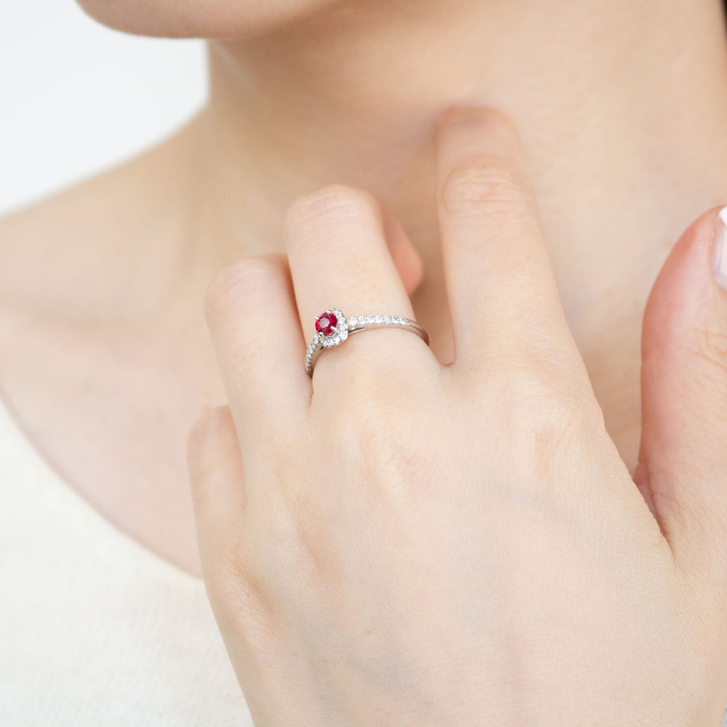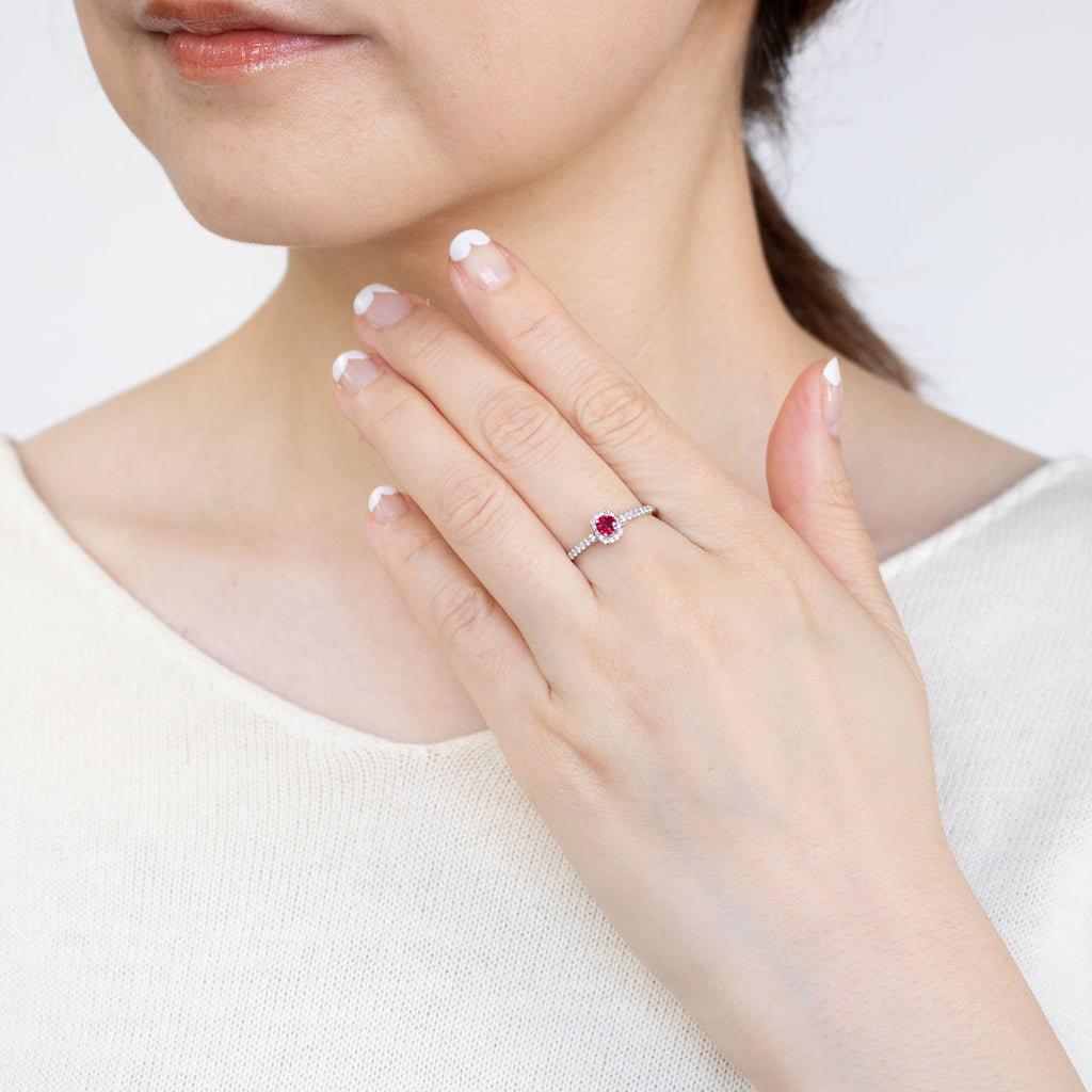 キラッと輝くラウンドカットのルビーを使ったリングです。