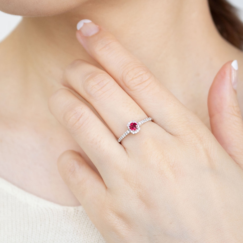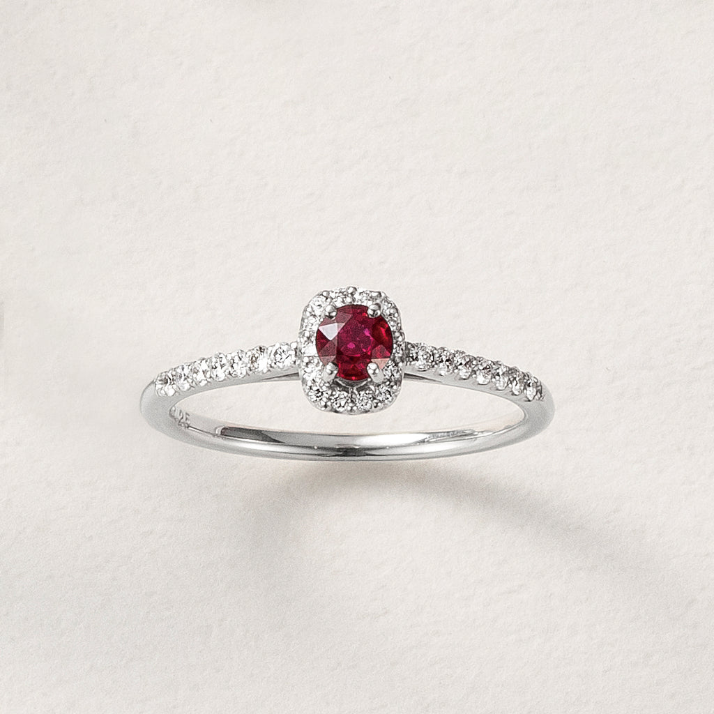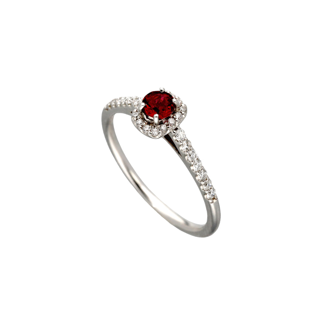 キラッと輝くラウンドカットのルビーを使ったリングです。