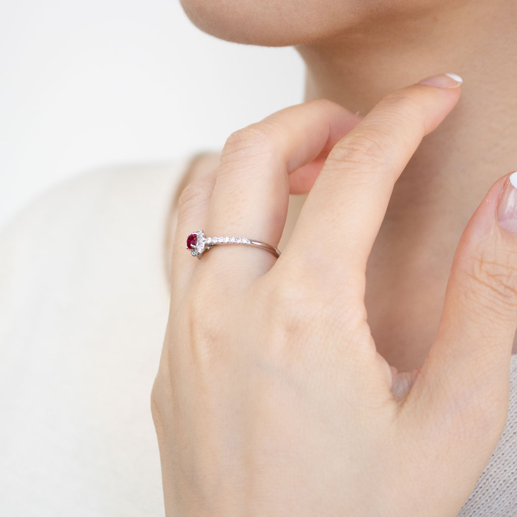 ルビーはその硬さと血液を連想させる鮮やかな赤い色から、お守りとして、また王侯貴族の富の証として、古くから大切にされてきた伝統のある宝石です。