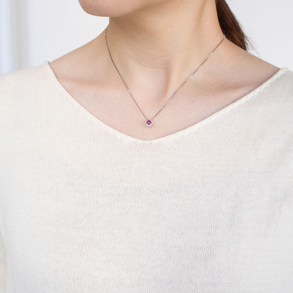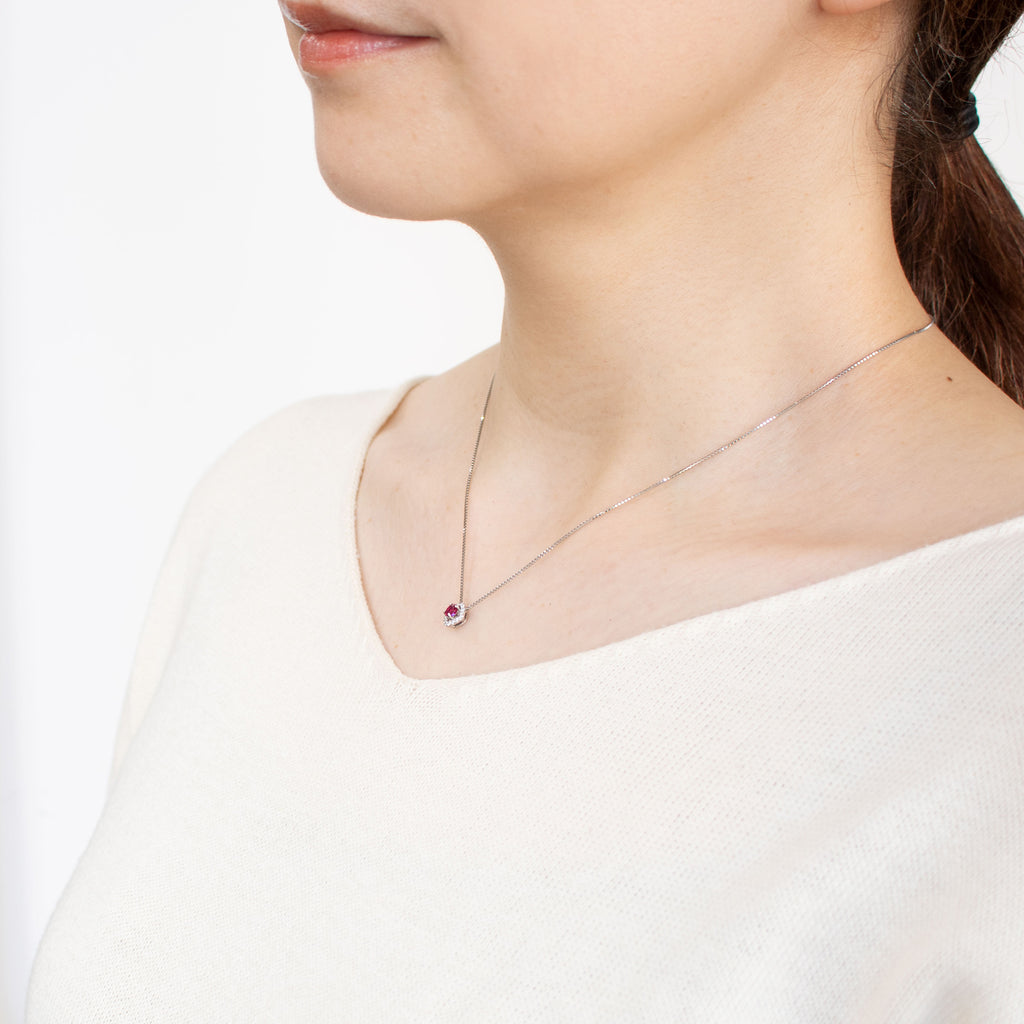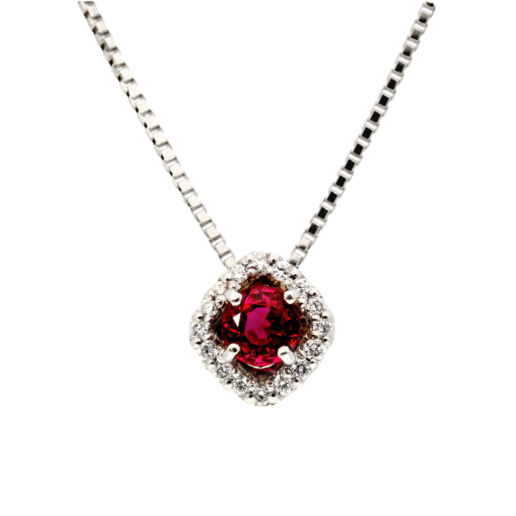キラッと輝くラウンドカットのルビーを使ったネックレスです。