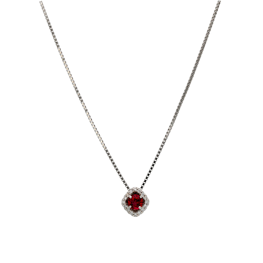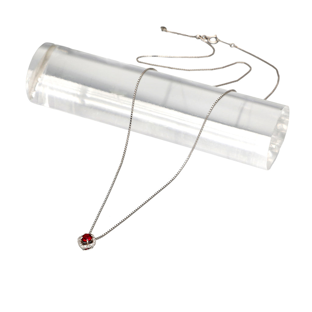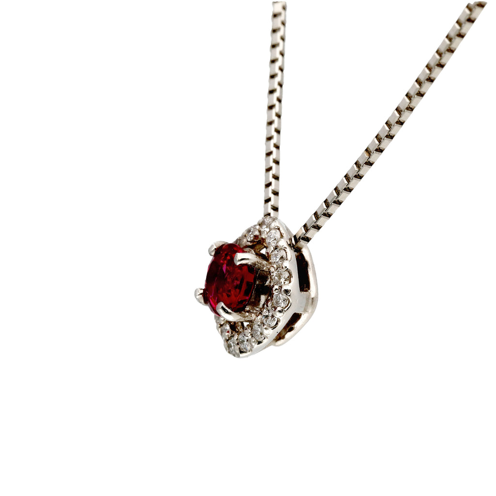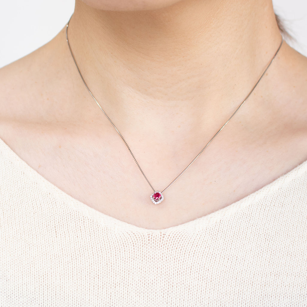 キラッと輝くラウンドカットのルビーを使ったネックレスです。